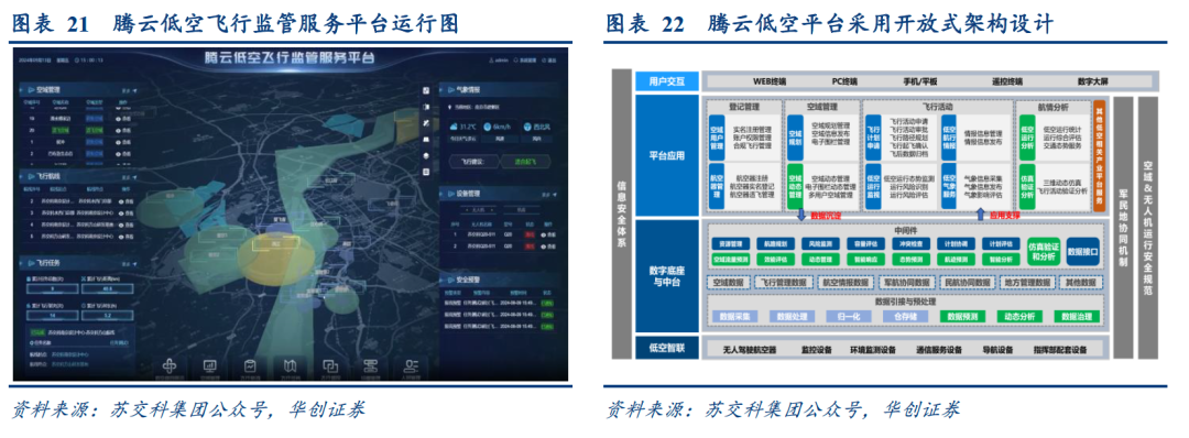 根据公司公众号:2024年9月14日,公司发布腾云低空飞行监管服务平台。苏交科集中整合低空基础数据、无人机设备、GIS技术、CIM平台技术等各类资源,开发了腾云低空飞行监管服务平台(简称“腾云低空平台”)。