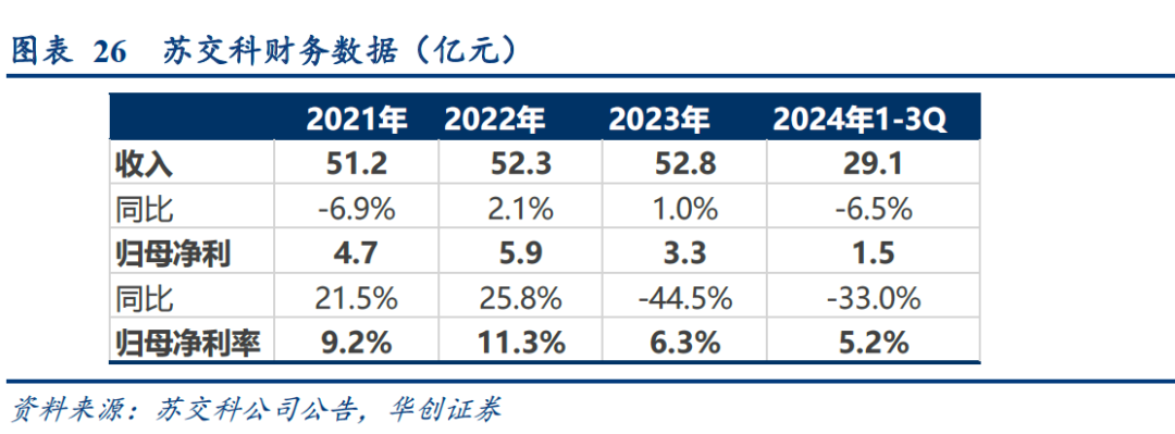 2023年苏交科收入52.8亿,归母净利3.3亿,净利率6.3%,24年前三季度收入29.1亿,同比下降6.5%,归母净利1.5亿,同比下降33%。