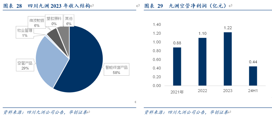 四川九洲2023年收入38.3亿,其中智能终端产品、空管产品收入分别为22.3亿及11.1亿,空管业务占主营业务收入比重29%。