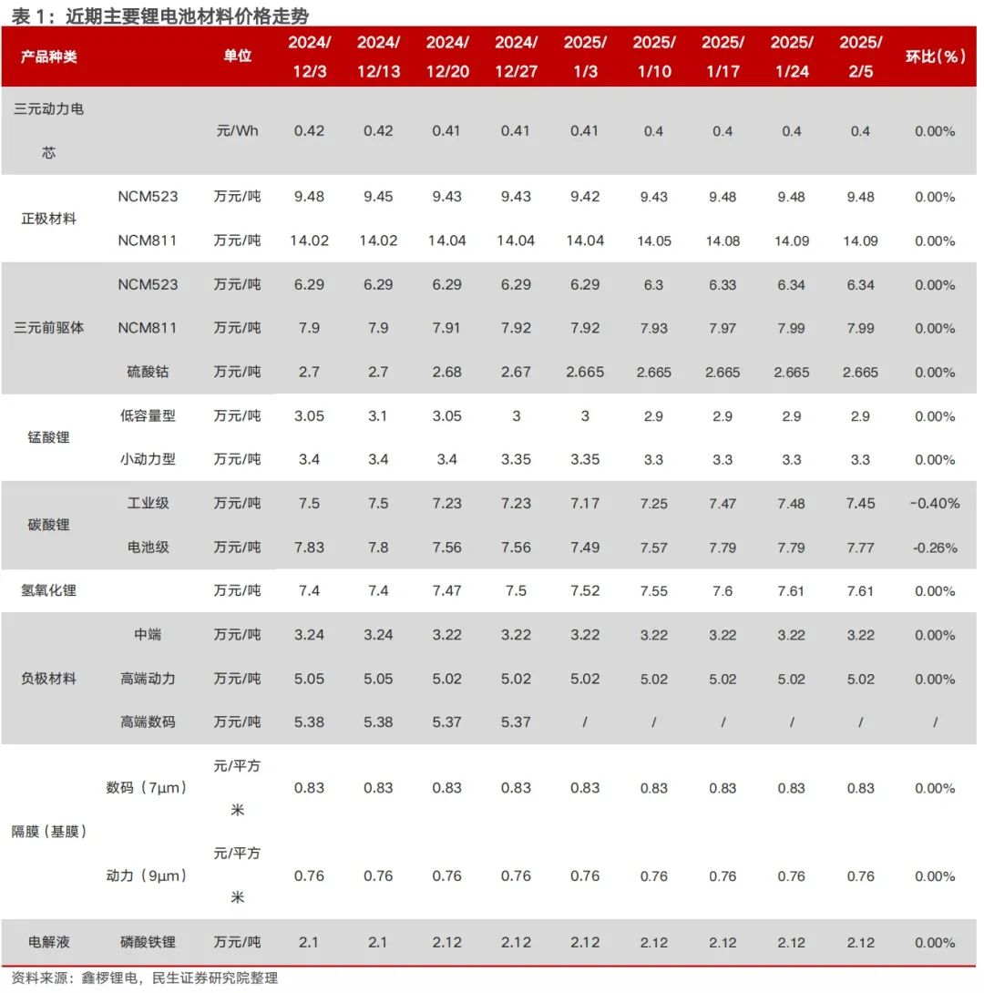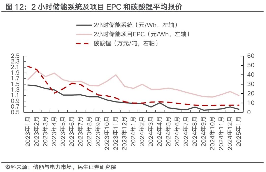 25年1月共计完成122项储能采招工作,总规模7.71GW/60.69GWh,2024年底启动的大型集采项目在春节前夕相继落地,总规模达45GWh,占到一月储能系统和EPC(含设备)总规模的74%。2小时储能系统/EPC均价分别为0.61/1.098(元/wh),环比分别-12%/-11%。