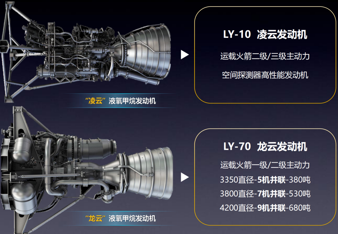 中型火箭 | 龙云LY-70为80 吨、天鹊-12A为75吨、苍穹-50为50吨 | 兼顾推力与效率,能够满足中低轨卫星组网、轨道转移等任务的动力需求 | |