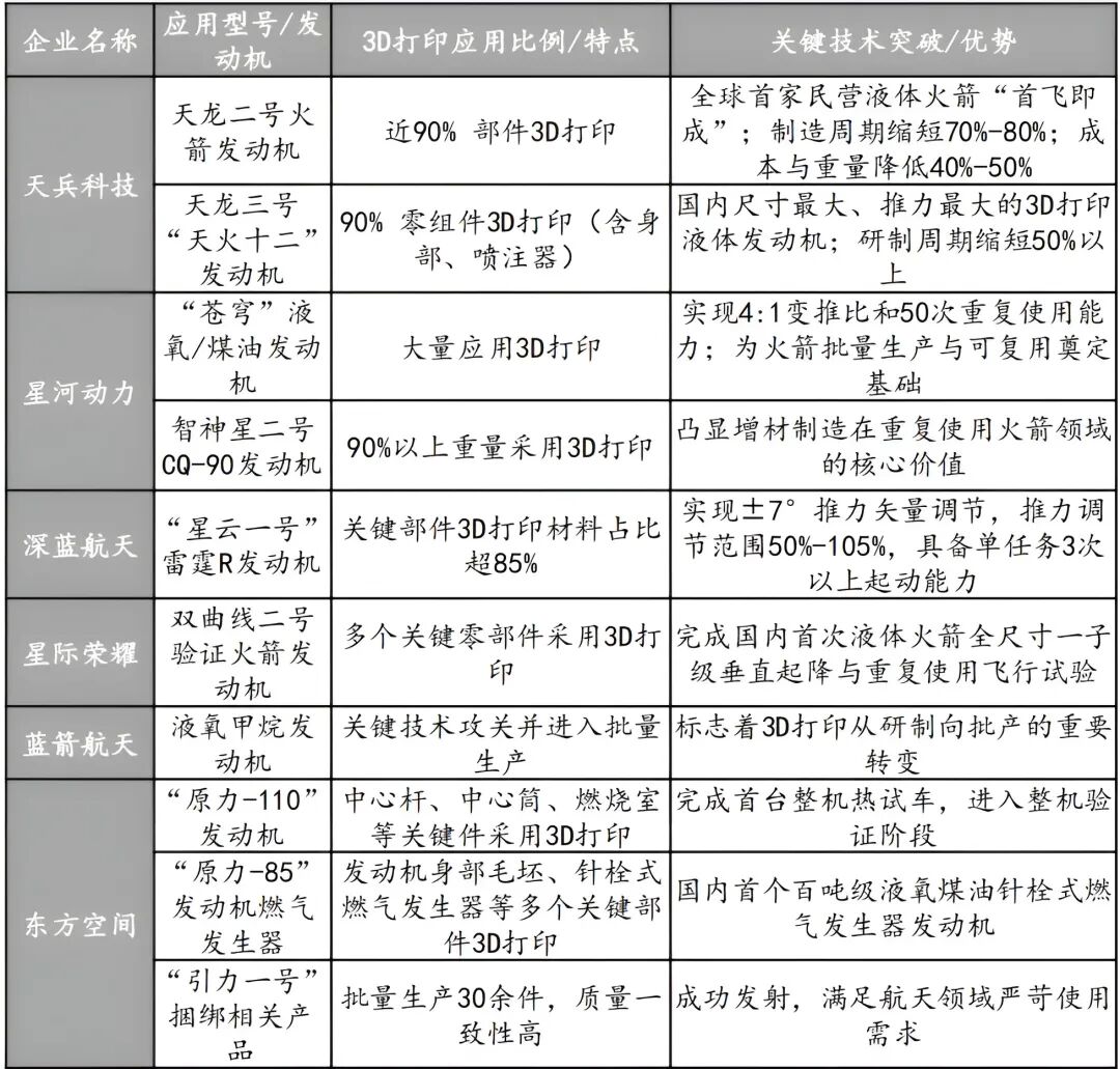 ② 铂力特;中国3D打印第一股,是国内唯一实现“设备 材料 服务”全产业链布局的企业,掌握高温合金、钛合金等难变形材料打印核心技术,一体化打印工艺减少部件焊缝,商业航天金属3D打印整体市场市占率约40%。