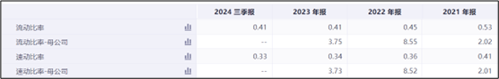 数据来看,永泰的流动比率和速动比率双低,且越来越低。截至2024年三季度末,流动比率和速动比率分别仅剩0.41和0.33。