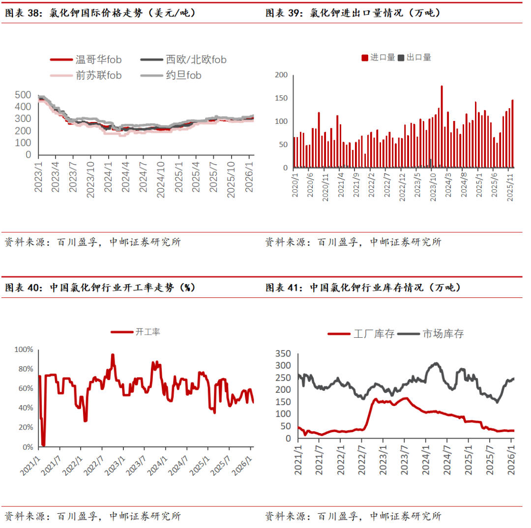 钾肥:国内召开保供稳价会议,氯化钾市场谨慎观望。截至到本周四(1月29日),百川盈孚市场均价3297元/吨,价格较上周四上涨10元/吨,涨幅为0.3%。本周召开钾肥保供稳价会议,以维护市场稳定为导向,会议指出倡导全年“两稳”,一是稳供应,供需客户签订意向性长约;二是稳价格,要求26年全年按照限价执行。这在一定程度上压缩了市场情绪炒作空间,使买卖双方心态更加谨慎,避免盲目追高或恐慌性抛售,但目前市场供应量依旧有限,高价货源依旧存在。价格方面:当前氯化钾市场心态以谨慎观望为主,供应端惜售与需求端刚需采购相互博弈,价格短期内可能维持高位窄幅震荡。百川盈孚获悉,国产60%钾3100-3280元/吨,57%粉2900-3100元/吨;班列62%白晶3500-3550元/吨;港口62%白钾3150-3600元/吨,60%老挝粉3260-3300元/吨,60%颗粒钾3250-3400元/吨;边贸口岸62%白钾3350-3400元/吨左右。供应方面:本周国内氯化钾生产企业开工率呈现缓慢下行状态,青海某大厂本周进入停产检修阶段,检修时间为一个月左右,国产货源整体供应量紧张。港口方面,截至1月23日,港存总量为248万吨左右(含保税区),同比减少约0.29%,货源集中于少数贸易商,惜售心态明显,流通节奏受控。边贸62%白钾货源紧张,到货多为前期预售货源,市场价格持续高位。需求方面:国内下游复合肥工厂装置开工率缓慢恢复中,且多数企业会在春节前期进行原料储备,存在一定刚需支撑,但对于目前高价货源接受度较低,加之保供稳价政策的出台,备货心态趋于谨慎,多在等待氯化钾供应商针对下游直供工厂的放货情况。国际市场:正在进行的印度尼西亚主要标准 MOP 采购招标进展顺利,在最新一轮谈判后,最低报价第三次达到395 美元/吨(CFR)。有报道称巴西颗粒氯化钾销售价格上涨,为本周召开的肥料拉丁美洲会议定下基调。