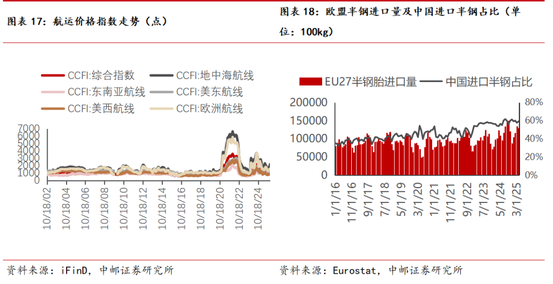 (3)欧美需求:2025年10月,美国轮胎进口数量1856.43万条,同比-4.70%,环比-3.68%;其中全钢胎297.80万条,同比-10.62%,环比-1.72%;半钢胎1401.85万条,同比-2.61%,环比-4.29%。2025年11月,欧盟轮胎进口数量为16.70万吨,同比-9.85%,环比-17.39%;其中全钢胎6.44万吨,同比-0.81%,环比-5.58%;半钢胎10.26万吨,同比-14.72%,环比-23.39%。