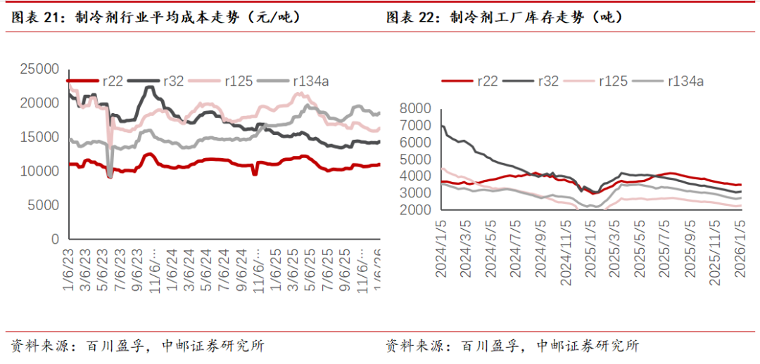 (3)需求面:2025年12月全国家用电冰箱产量1001.1万台,同比增加5.7%;1-12月累计产量10924.4万台,累计增长1.6%。12月全国家用冷柜产量297.6万台,同比增加7%,1-12月累计产量2784.8万台,累计增长-0.9%。
