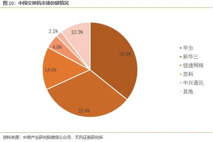 锐捷网络是国内交换机行业的重要领先厂商。锐捷网络,成立于2003年,是行业领先的ICT基础设施及解决方案提供商,业务范围覆盖90多个国家和地区。在交换机领域,公司持续深耕,根据中商产业研究院数据,2024年中国交换机市场华为、新华三、锐捷网络市场份额分别为35.8%、32.4%和14.6%,呈现寡头竞争的市场格局。