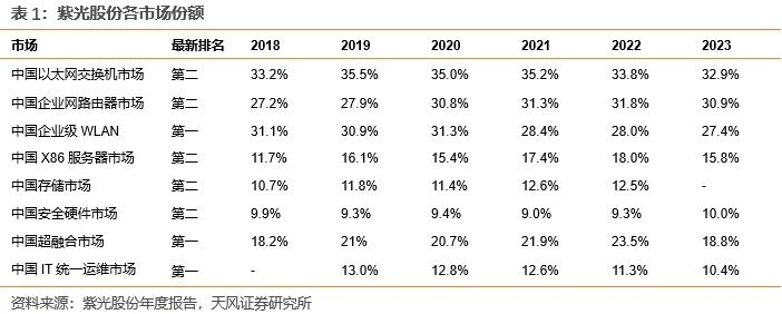 紫光股份市场地位显赫,彰显公司ICT领域业务能力。根据 IDC、Gartner、计世资讯的相关统计数据,公司网络、计算、存储、安全、云计算等产品市场占有率均位居前列,用户对于公司产品具有高认可度,体现公司ICT领域业务能力。