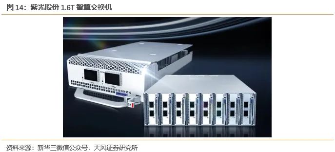 公司领先布局800G CPO、1.6T智算交换机,先发优势卡位赛道。公司于2023年、2024年分别发布51.2T 800G CPO硅光数据中心交换机(H3C S9827系列,全球首发)以及1.6T智算交换机H3C S9825-8C-G,成功实现在高速率接口上的容量突破,结合创新的硬件架构升级,满足智算网络高吞吐、低时延、绿色节能的需求,引领业界全面开启智算网络1.6T时代。