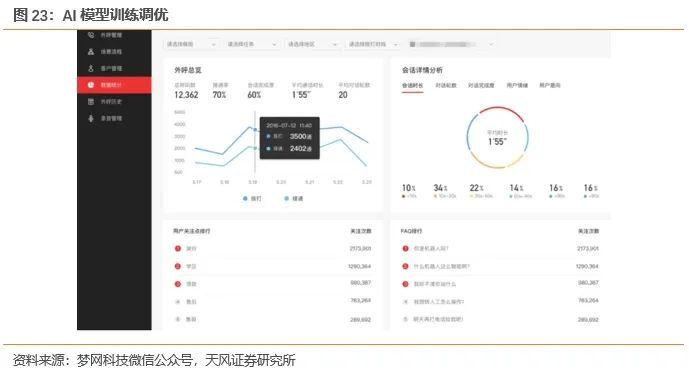 梦网科技打造AI 5G消息、AI 语音。在AI语音方面,梦网科技融合运营商语音线路资源,构建了AI外呼能力。AI外呼和5G阅信的融合为企业提供全流程AI化的智能云通信解决方案,开辟了全新的私域运营服务。梦网科技与运营商合作探索,基于原生通话入口快速搭建“通话 AI”智能应用,服务企业与用户交互的全流程。