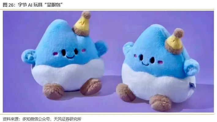 字节做AI玩具拓展。今年中秋节,字节跳动送出的中秋礼品中包含了一个AI毛绒玩具“显眼包”,其后至今,多个社交平台陆续出现了一些显眼包的体验内容。显眼包是一款基于大模型开发的情感陪伴玩偶,集合了火山引擎的多项人工智能技术,如豆包大模型、扣子专业版、语音识别、语音合成等。之所以能够提供语音互动,是因为它内嵌了FoloToy的大模型AI机芯Magicbox(魔匣),Magicbox可以搭载并呈现豆包大模型和扣子专业版的能力。