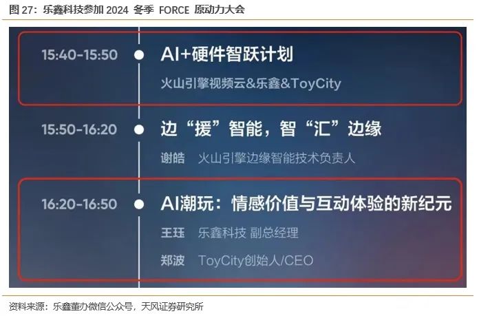 ①乐鑫科技提供AI潮玩方面能力。乐鑫科技将出席火山引擎2024 冬季 FORCE 原动力大会,并在会中发表主题演讲。