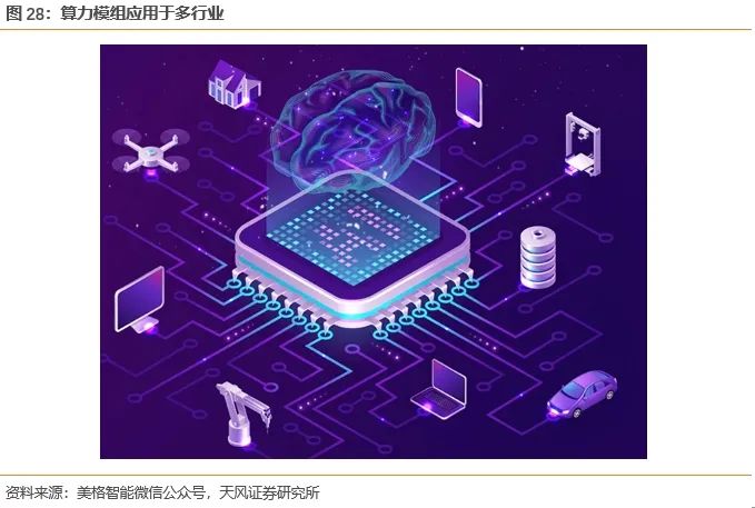 算力模组是面向各类对CPU/GPU/AI算力有强需求的专用场景开发的智能模组产品。它是智能模组(通信 智能操作系统 强算力支撑)的一个子集,基于SoC芯片开发而成,集成和融合了多种计算单元(CPU、GPU、ASIC、FPGA、NPU等),既有通用计算单元,也有高性能的专用计算单元,在减小尺寸、降低成本、降低功耗、易于开发等方面有突出优势,可提供不同等级的硬件算力,并根据场景需求,匹配5G/Wi-Fi/千兆以太网等各类通信方式。终端侧算力需求的激增和边缘计算场景的极大丰富,有望带动高算力模组品类高速发展。