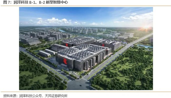 AIDC领军,算力中心储备丰富。公司抓住AI发展机遇,向AIDC与液冷进行布局,作为“AIDC 领先”的头部企业,公司敏锐地抓住了 AI 技术革新为 IDC 领域带来的机遇,吸引了众多 AI 头部客户将核心训练模组部署于公司智算中心,取得了大规模 AIDC 订单,实现了携手终端大模型起步、成长、壮大的目标,为公司持续高速发展注入新动力。2024 年上半年,公司 AIDC 业务实现高速增长,收入达到 20.5亿元。同时打造新一代液冷智算中心,廊坊 B 区将全部建设成新一代液冷智算中心, IT 容量分别为 2 栋单体 200MW 和 1 栋单体 100MW,第一栋200MW楼在理论距离约束 范围内可聚集 13 万张以上算力卡的集群。平湖 B 区新一代智算中心也规划了单栋楼 100MW IT 容量。
