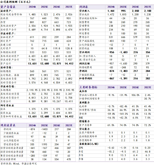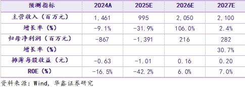 预测公司2025-2027年收入分别为9.95、20.50、21.00亿元,归母净利润分别为-13.91、2.16、2.82亿元,EPS分别为-1.01、0.16、0.20元,当前股价对应PE分别为-9.5、61.2、46.8倍,作为影视行业民企,持续专注打造内容产品并进行全产业链布局,基于行业深耕多年也构筑了优质内容护城河,AI时代公司积极拥抱,已推出AIGC短剧《三星堆:未来启示录》,基于2026年公司电影产品与AI电影新供给有望助力主业回暖,进而维持“买入”投资评级。
