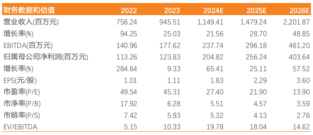我们预计公司 24-26 年实现营收 11.49/14.79/22.02 亿元,实现归母净利润 2.05/2.56/4.04亿元。