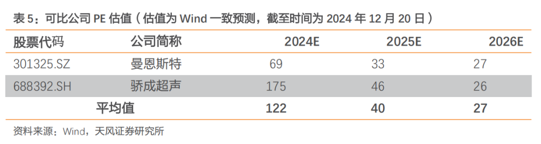我们预计公司24-26年归母净利润为2.05/2.56/4.04亿,PE分别为27/22/14X。把曼恩斯特和骄成超声作为可比竞对,给予纳科诺尔25年40X PE,目标价91元,首次覆盖,给予“买入”评级。