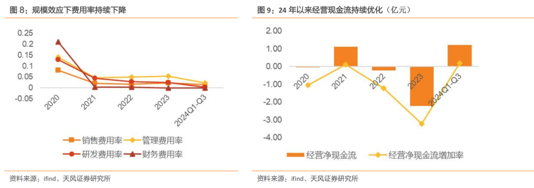 毛利率平稳增长。毛利率从 2020 年的 12.47%上升到 2023 年 25%,其原因是2020-2022 年新能源汽车市场的快速发展同时公司提供的锟压机产品定制化特征较强,产品功能不断增强,产品附加值在不断增高;2023 年保持平稳的原因是国内市场较为稳定。