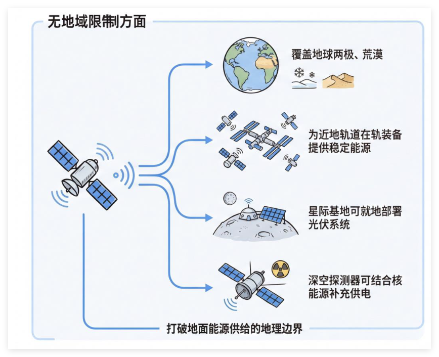 从广义范畴来讲,涵盖了空间太阳能电站等规模化形态,借助光电转换与无线传输技术,可突破地面能源供应的诸多限制,为全球低碳能源体系提供潜在的补充。