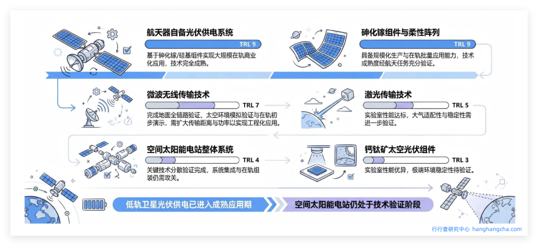 太空光伏技术沿“砷化镓过渡→HJT主导→钙钛矿叠层终极突破”演进,核心目标是提升效率、降低成本、强化抗辐射性。