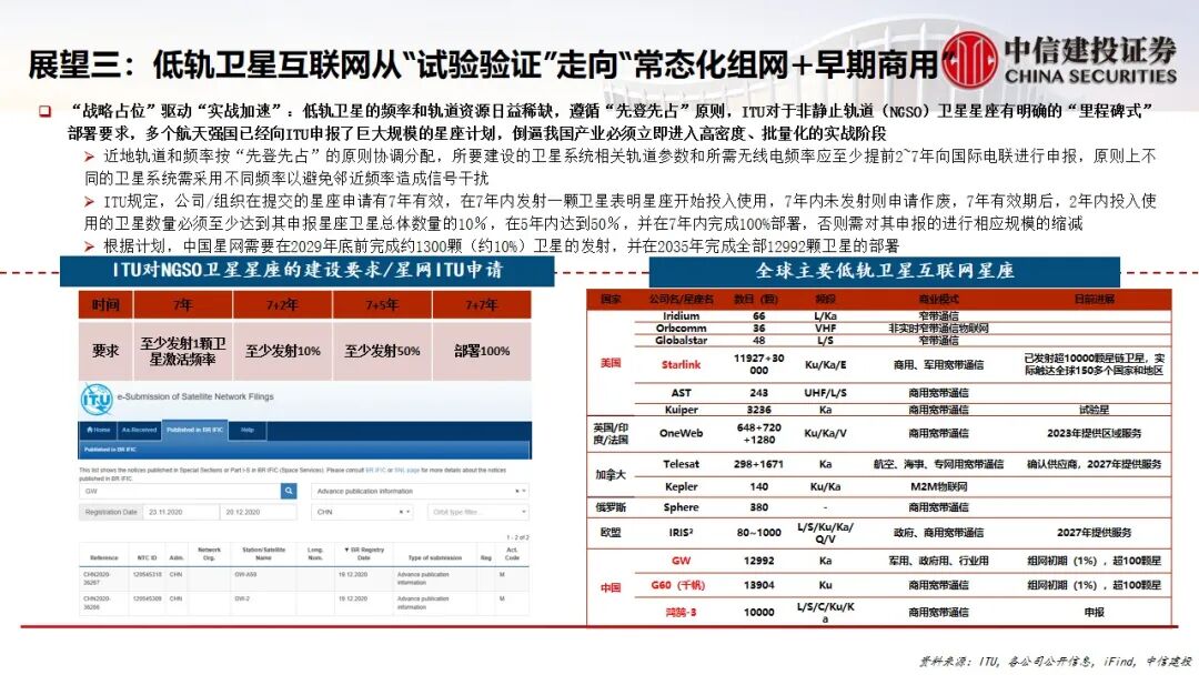 3.低轨卫星互联网进入常态化组网:受ITU“先登先占”规则驱动,以“星网”、“千帆”为代表的中国低轨星座进入批量部署阶段。“一箭多星”高频发射成为常态,旨在争夺稀缺的频轨战略资源。