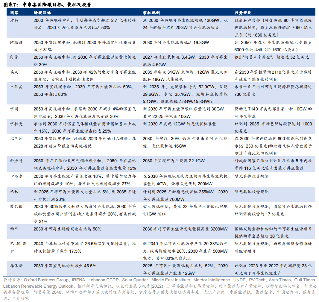 光伏出海中东优势2:能源转型目标明确,政策支持产能本土化