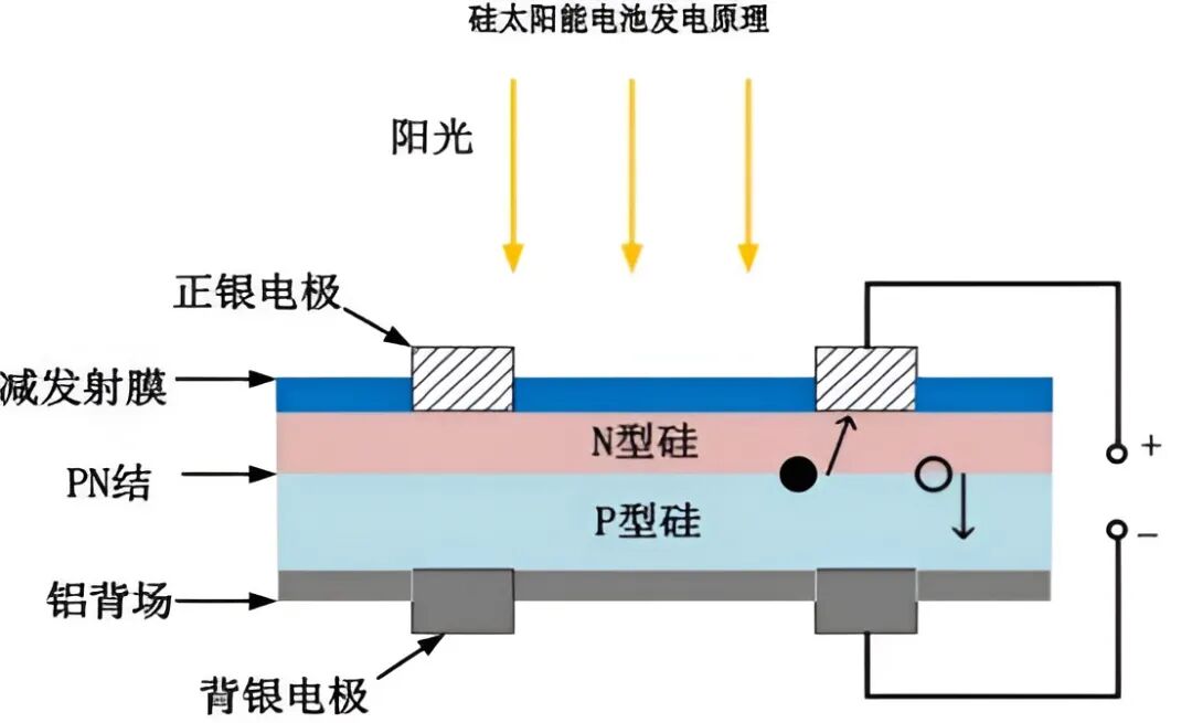 晶硅电池技术是以硅片为衬底,根据硅片的差异区分为P型电池和N型电池。两种电池发电原理无本质差异,都是依据PN结进行光生载流子分离。