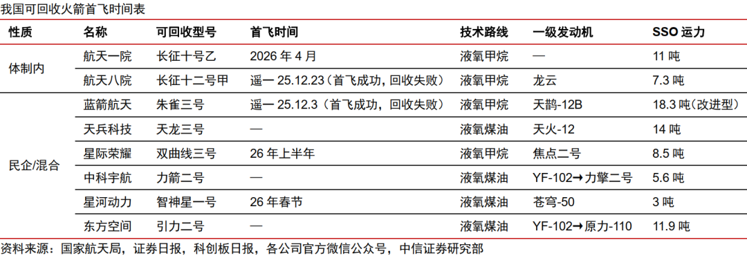 硬件设备成本占比高,火箭可回收是重要降本路径。据国家航天局,2025年12月3日蓝箭航天朱雀三号重复使用运载火箭发射入轨,是国内首次尝试一级回收的运载火箭,12月23日航天八院长征12A火箭同样入轨成功回收失败,2026年多家民营企业及体制内院所将继续开展可回收火箭验证。现阶段我国的民营火箭公司已完成猎鹰1号形式的液体火箭首飞,下一阶段有望研发出对标猎鹰9号的可回收中型运载火箭,将参与到中国星网、千帆星座以及算力卫星的发射服务中,届时火箭运力和发射成本瓶颈将迎来突破。
