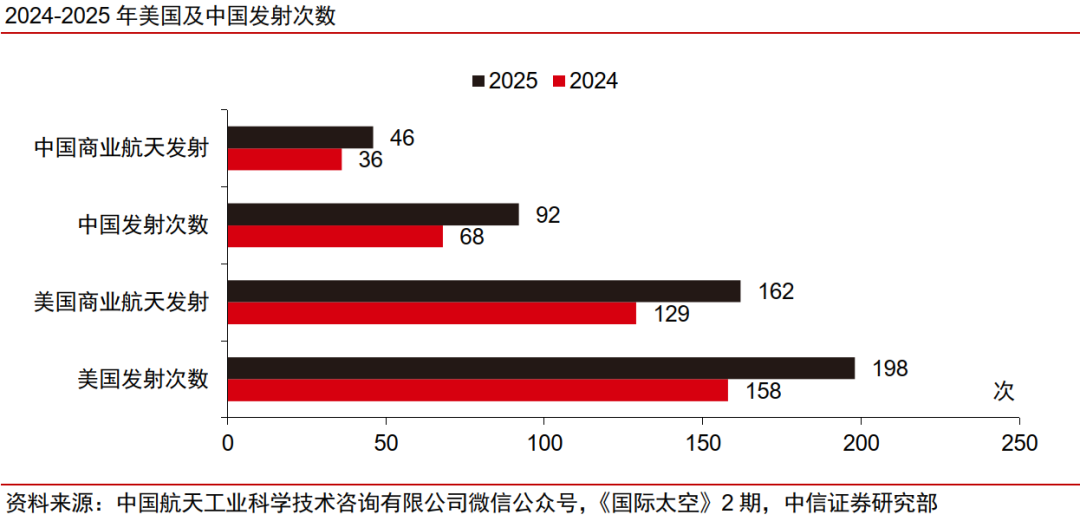 1月9日,美国联邦通信委员会(FCC)正式批准SpaceX部署额外7500颗二代星链;1月30日,SpaceX向FCC提交名为“轨道数据中心系统”的卫星星座发射申请,计划发射、运营至多100万颗卫星组成的星座;2025年12月我国向国际电信联盟(ITU)提交新增20.3万颗卫星的申请。由于空间资源、频谱资源为极为有限的战略资源,卫星频轨资源申请已上升至国家战略层面,中美商业航天竞争日趋激烈。