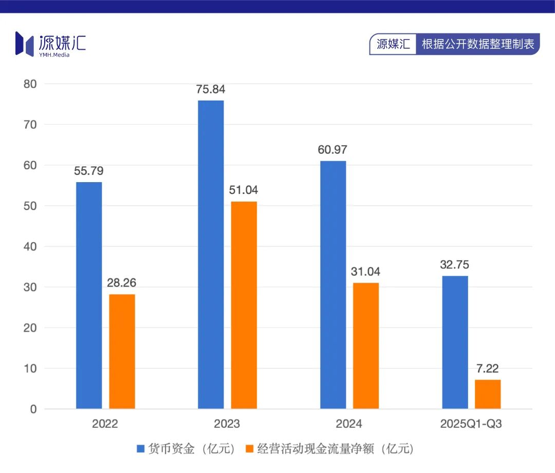 除此之外,反映长春高新自身“造血”能力的经营性现金流,在2023年达到51.04亿元后,也在2024年开始下滑,并在2025年前三季度降至7.22亿元,创下近年新低。这意味着长春高新主营业务创造的净现金流已捉襟见肘。