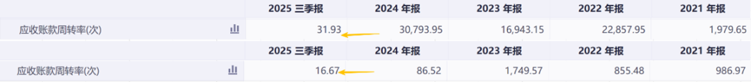 经营活动现金流上,2025年前三季度,酒鬼酒为-3.26亿元,水井坊更是低至-8.67亿元。水井坊除了上述的新项目投入之外,与酒鬼酒的共同困境在于:应收账款周转率大幅下降,回款速度急剧恶化,大量资金被占用在渠道和库存里。