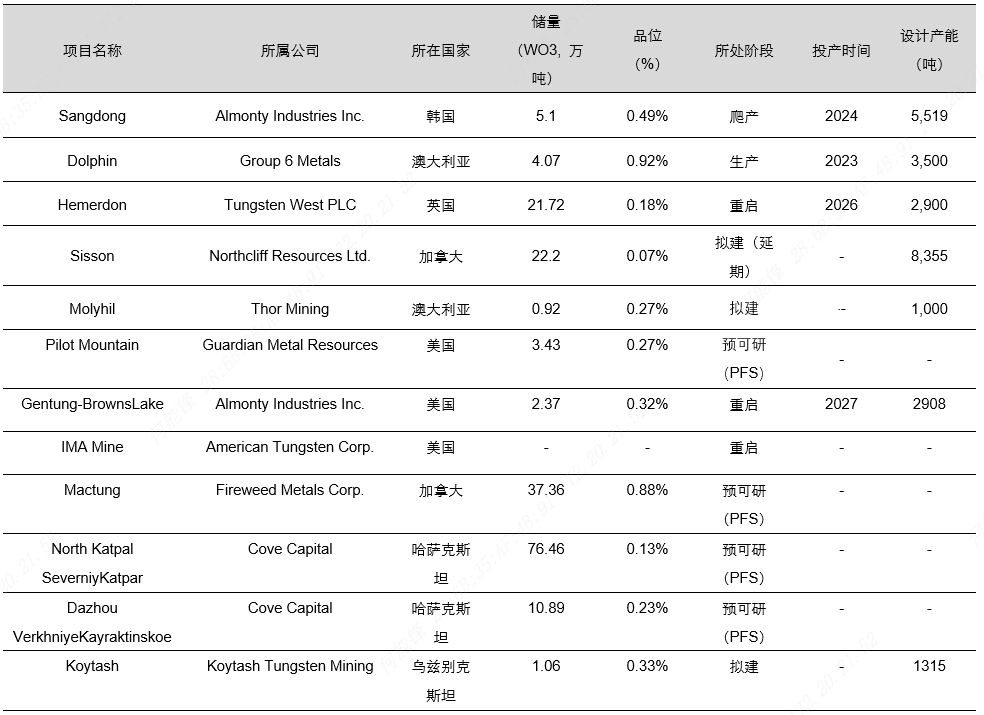 海外钨矿产能释放节奏缓慢,海外采购依赖度难减。钨价高涨刺激哈萨克斯坦、加拿大、韩国及澳大利亚钨矿项目加速推进,但产能释放节奏缓慢。其中,Hemerdon、Sisson 的投产时间在 2026 年前后高度依赖于融资、许可和市场价格窗口,存在显著延后甚至再度停摆风险。加拿大及哈萨克斯坦的钨矿项目储量较大,开发前景巨大,但仍处于早期阶段。我们预计,2026年海外钨矿(非中资控制)新增产能或不足5000吨(WO₃ 65%),因此在中国总量控制及出口管制政策压制供应情况下,海外采购依赖度难减。