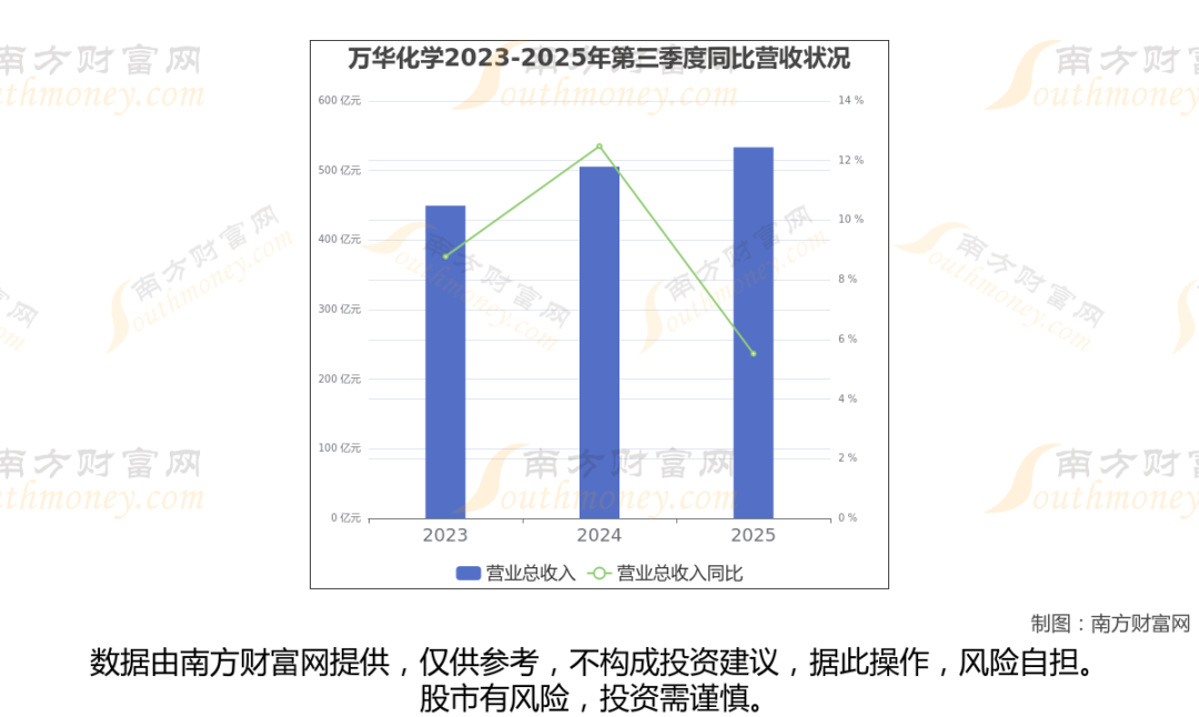 (如上图)万华化学披露2025年第三季度报告,报告期实现营收533.24亿元,同比5.52%。