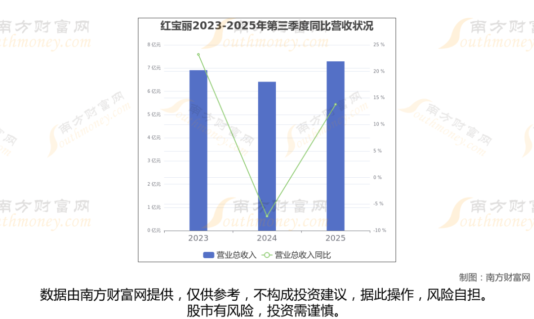 于2025年第三季度,红宝丽披露了其业绩表现(如上图),其中主营业务收入7.29亿元,相较于去年同期13.78%。