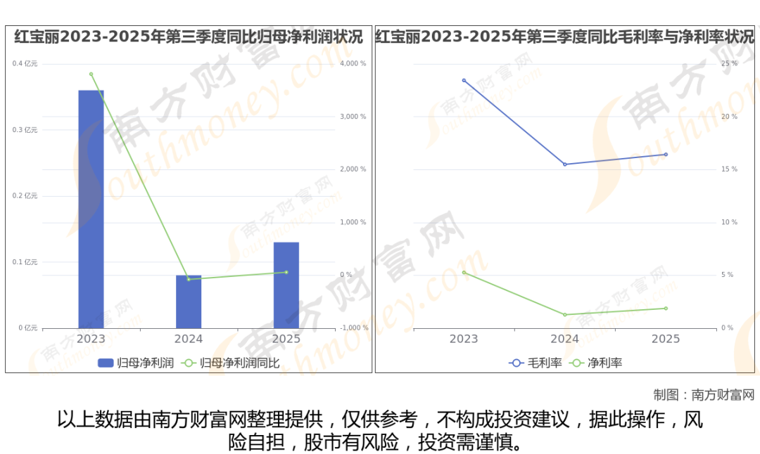 公司2025年第三季度季报显示,红宝丽实现净利润1307.24万,同比增长57.96%;毛利润为1.2亿,毛利率16.43%。