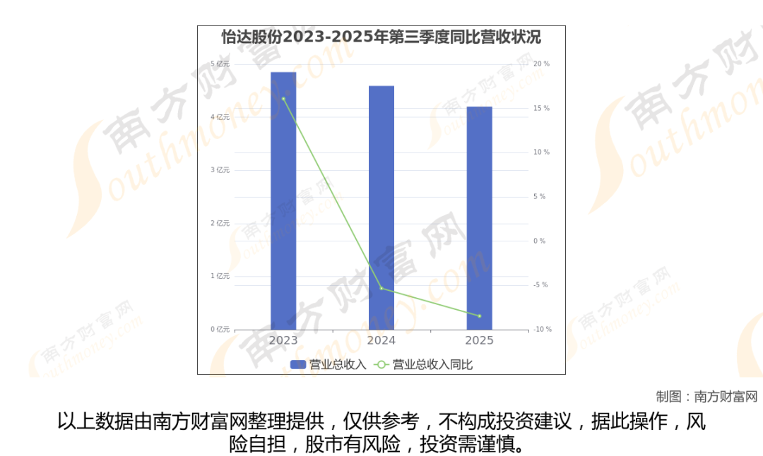 怡达股份2025年第三季度报告显示(如上图),公司实现主营业务收入4.2亿元,较去年同期增长-8.47%。