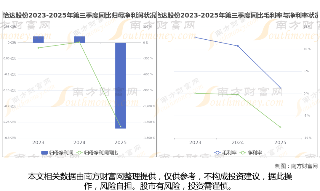 怡达股份2025年第三季度季报显示,公司实现净利润-2684.39万,同比增长-1582.3%;毛利润为557.23万,毛利率1.33%。