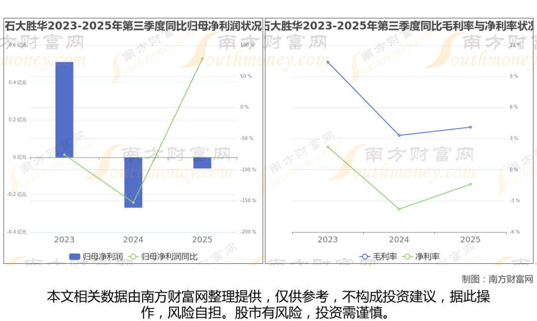 公司2025年第三季度季报显示,石大胜华实现净利润-586.41万,同比增长78.11%;毛利润为6654.9万,毛利率4.1%。
