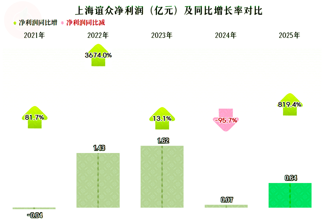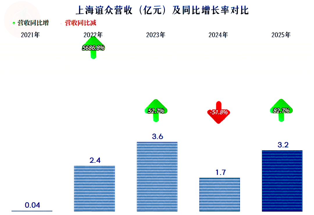 上海谊众的营收波动相当大,2022年增长50多倍后达到了2.4亿元,2023年仍有超五成的增长,但2024年却出现了“腰斩”,2025年大幅反弹后,仍未超过2023年的水平。