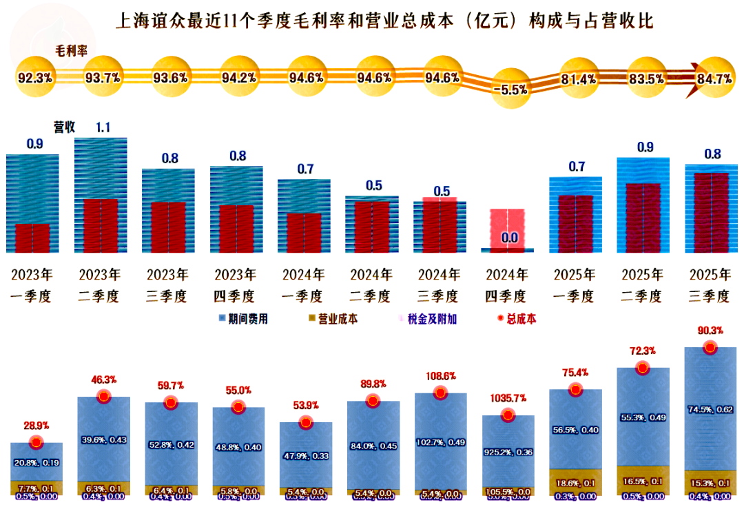 毛利率在2024年及以前是超九成的超高水平,2025年下跌了近10个百分点。毛利率的波动,对营收和净利润都是有较大影响的,具体的情况,在说分季度的数据时再细说。