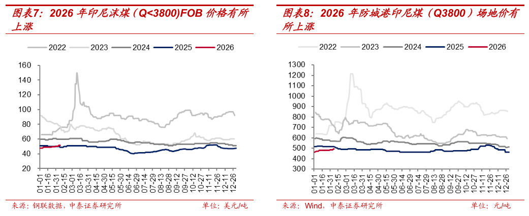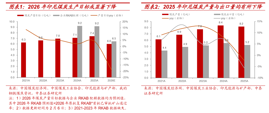 2026年3月和7月或为RKAB重要观察时点。2026年2月6日,印尼媒体Petromindo报道印尼能源与矿产部表示,目标在3月底前完成2026年RKAB的审批工作。此外,根据RKAB新规,企业每年可以在第二季度定期报告后与当年7月31日前提交一次RKAB修订申请。因此,2026年3月和7月将分别决定今年印尼煤炭产量的初始约束强度及年内是否存在边际放松的空间。