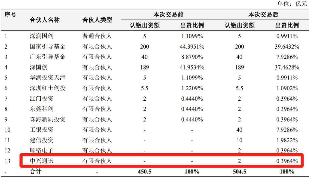 中兴通讯的参与,体现出产业资本与引导基金之间的协同。一方面,通过有限合伙方式参与国家级引导基金,有助于其在不承担过高经营风险的前提下,前瞻性接触和布局与自身主业高度相关的技术方向,为其核心业务的长期演进提供外部创新来源。另一方面,这种参与也为中兴通讯打开了多元化投资回报通道,使资本运作与产业发展形成双向支撑。