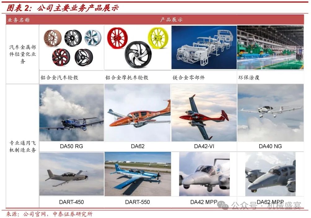 ◼ 业务布局:公司从事的主要业务包括两大板块,分别是以“铝合金-镁合金”为主线的汽车金属部件轻量化业务和集自主研发、设计、制造、销售服务等于一体的专业通用飞机制造业务。