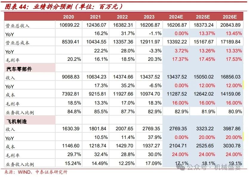 2)公司业绩稳健攀升,飞机制造业务出色:①自2006年上市以来,公司营收持续增长,归母净利润2019-2021年经历下滑但在2022年快速回升;2006-2023年,公司营收及归母净利润CAGR分别为15%和16%。②2020-2023年,飞机制造业务和汽车业务毛利率分别约为30%和18%,飞机制造业务毛利率高于汽车业务毛利率;飞机制造业务营收从2020年的16.3亿元增长至2023年的27.7亿元,营收CAGR达19%。