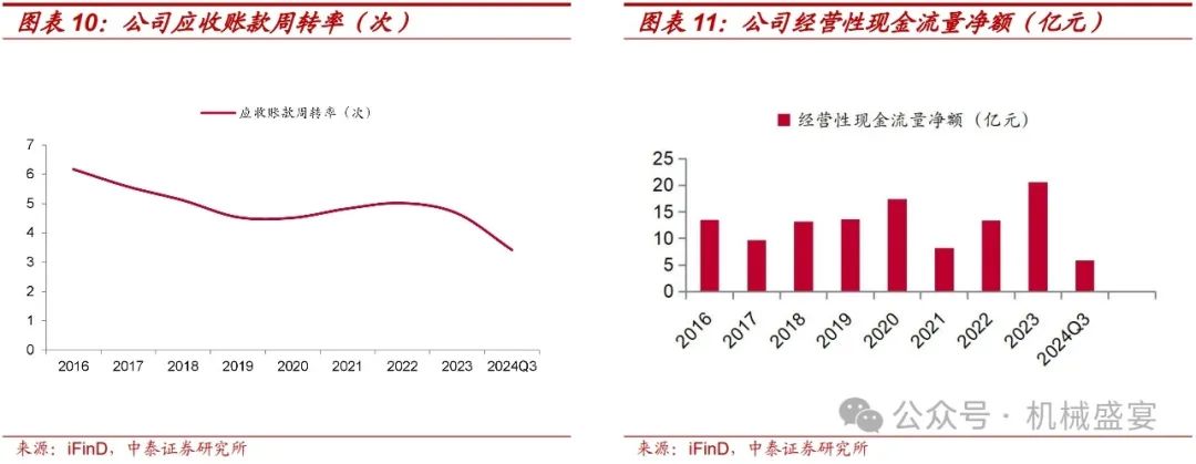 ◼ 应收账款周转率存在波动,近期回款速度加快。公司应收账款周转率在2016年至2019年呈下降趋势,应收账款回收速度放缓。2020年至2023年,应收账款周转率有所改善。
