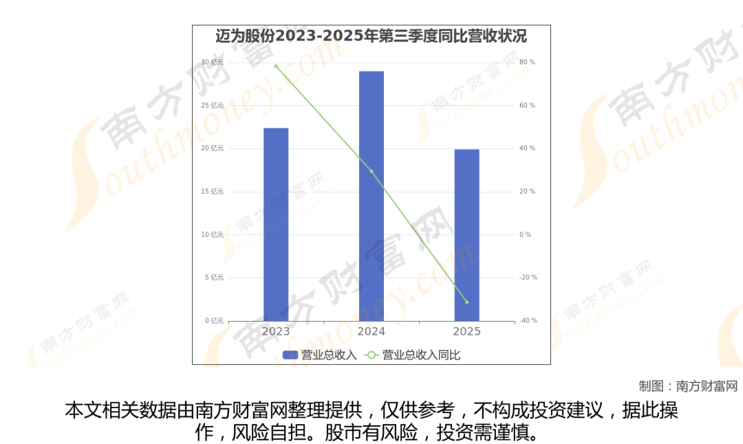 在2025年第三季度,迈为股份的业绩表现(如上图),主营业务收入达到19.91亿元,实现了-31.3%的同比增长率。