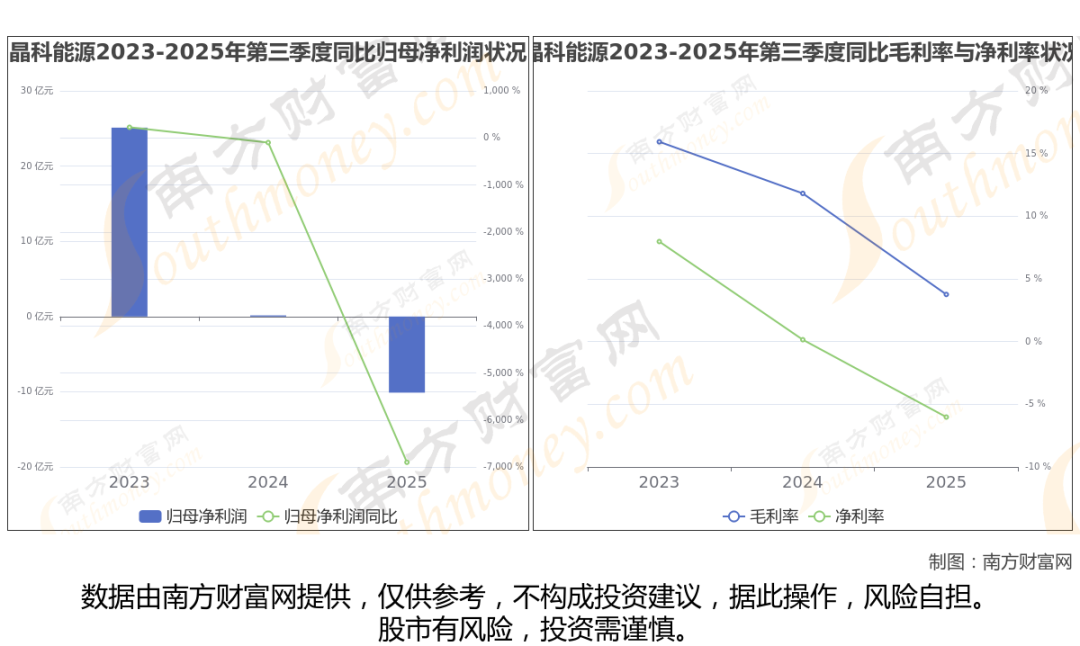 晶科能源2025年第三季度季报显示,公司实现净利润-10.12亿,同比增长-6900.55%;毛利润为6.07亿,毛利率3.76%。