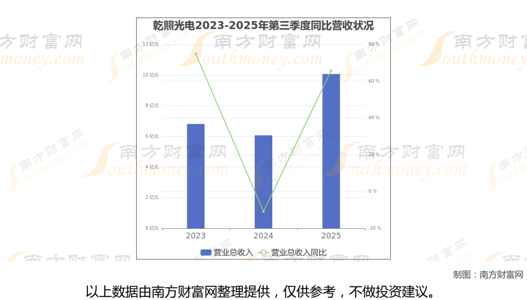 乾照光电2025年第三季度报告显示(如上图),公司实现主营业务收入10.07亿元,较去年同期增长65.8%。