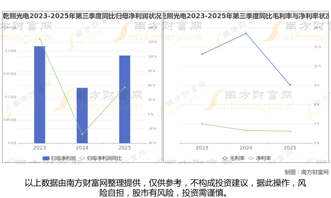 乾照光电2025年第三季度季报显示,公司实现净利润1871.55万,同比增长56.01%;毛利润为9139.88万,毛利率9.08%。