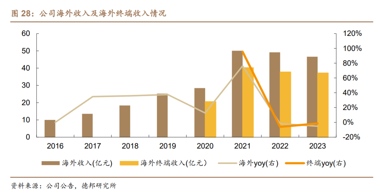 海外业务,随着 ODM 新产品业务规模提升及自有品牌业务的发展,海外业务毛利率有望提升。